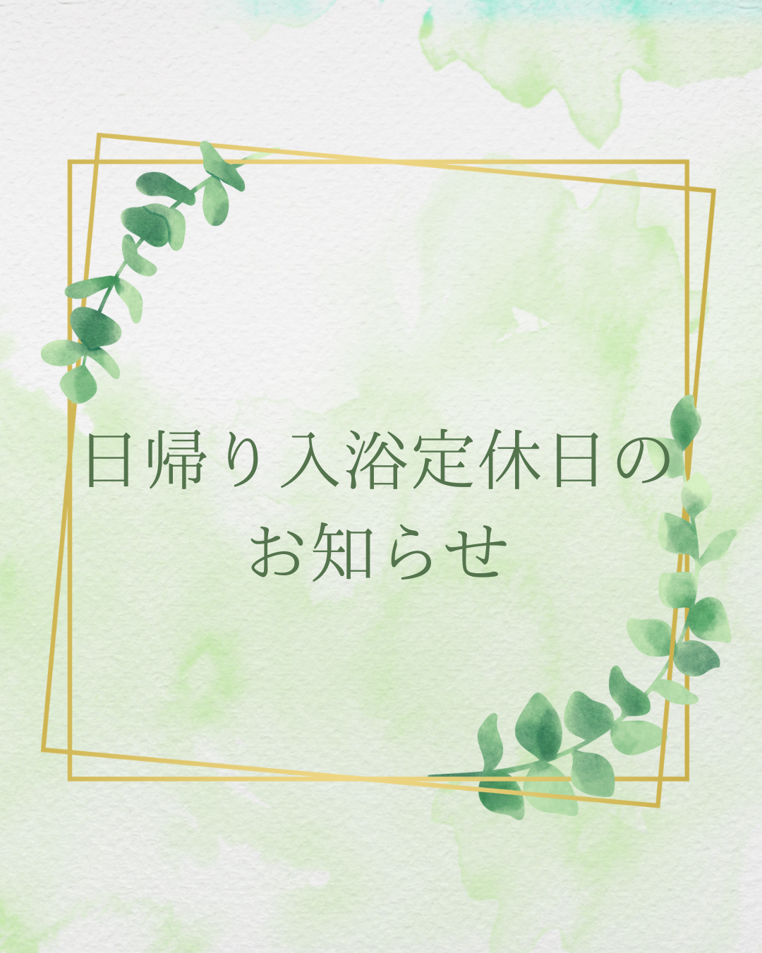 【お知らせ】休暇村南阿蘇 日帰り入浴定休日