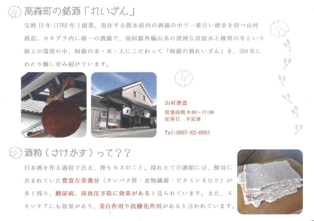 高森町内の12店舗が、地酒「れいざん」の搾りたての酒粕を使ったオリジナルメニューを提供。