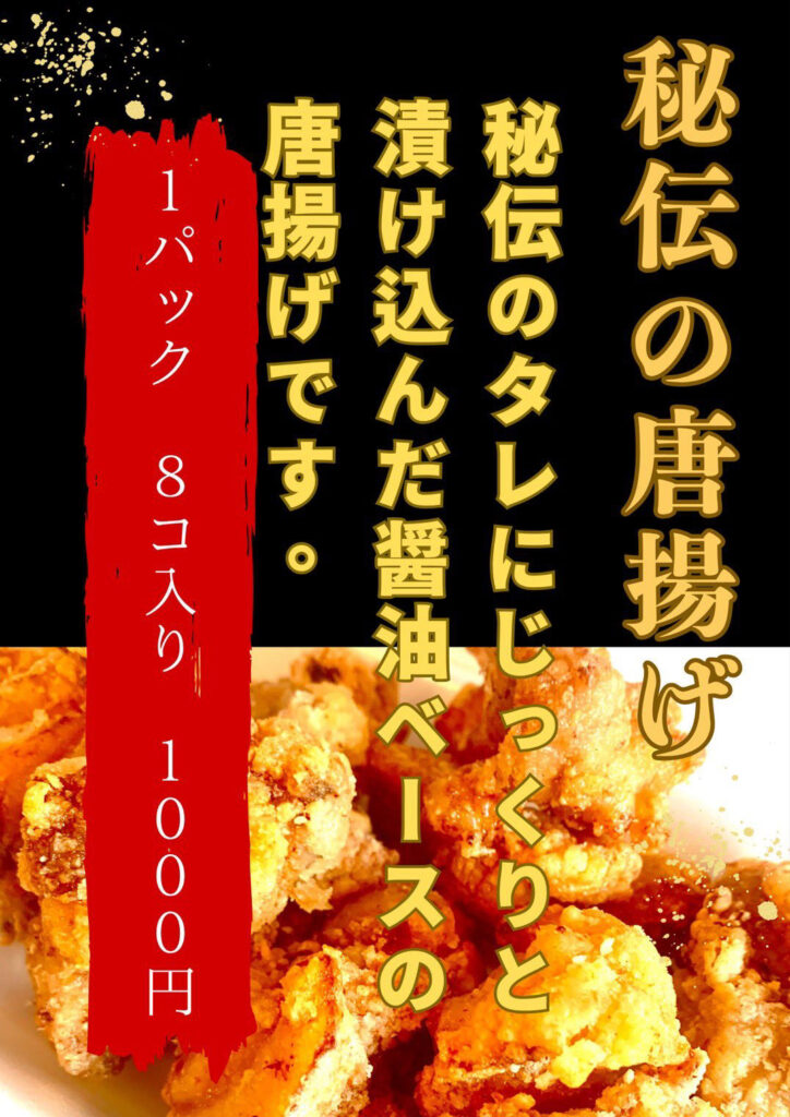 秘伝の唐揚げに馬肉カレー、ポテトや手羽先、ホットドリンクまで!皆さまぜひお酒と共にどうぞ!